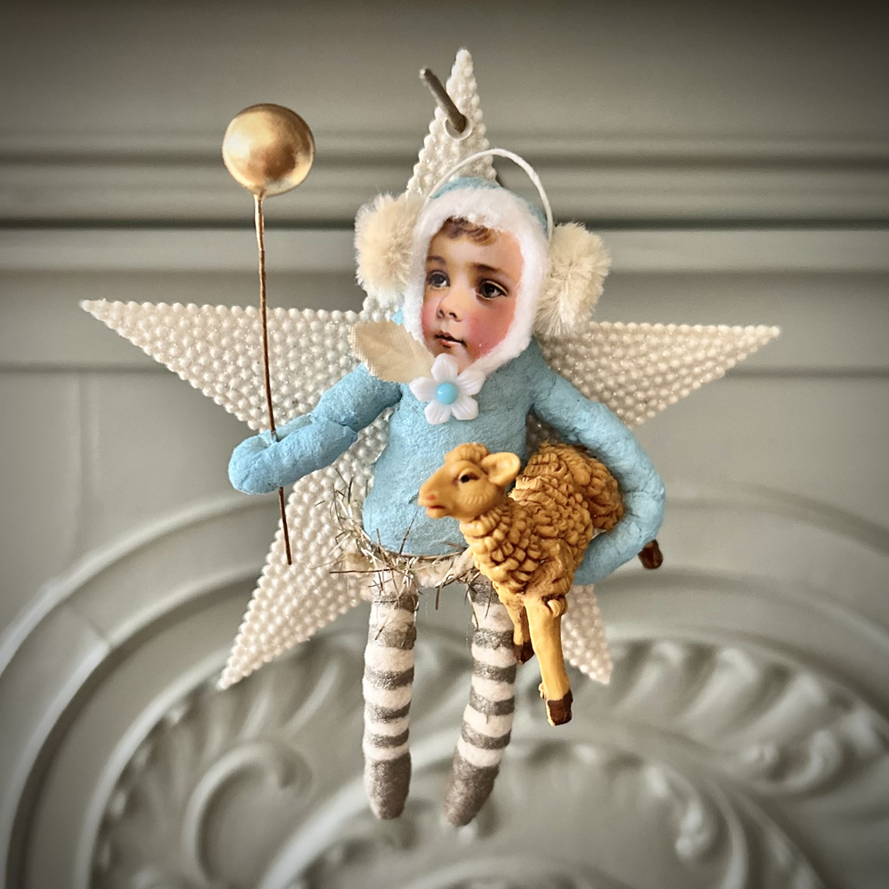 Diese Figuren sind unglaublich charmant und sehr liebevoll von mir in Handarbeit nach einer alten Tradition aus Draht und Watte gefertigt. Verziert mit teilweise alten Dekorationen sind sie wirklich etwas Besonderes. Es handelt sich um einen Dekorationsartikel, der nicht zum Spielen geeignet ist. Nicht für Kinder unter drei Jahren geeignet.